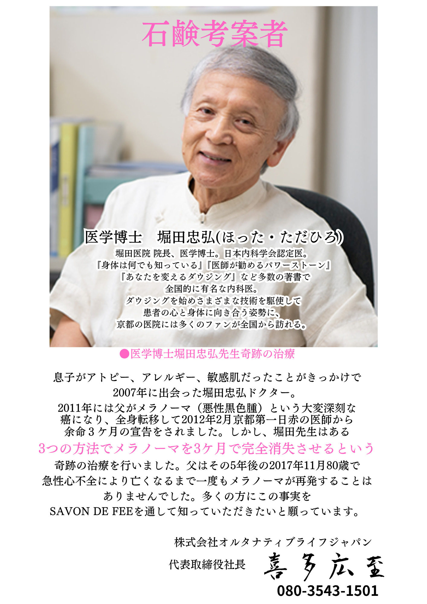 石鹸考案者による父への全身癌への奇跡の治療について